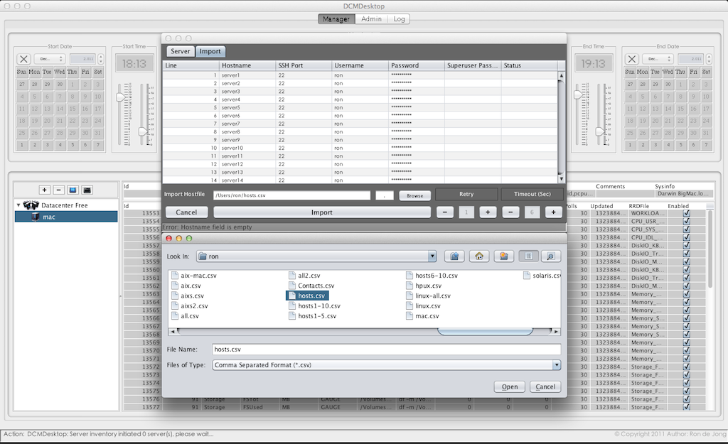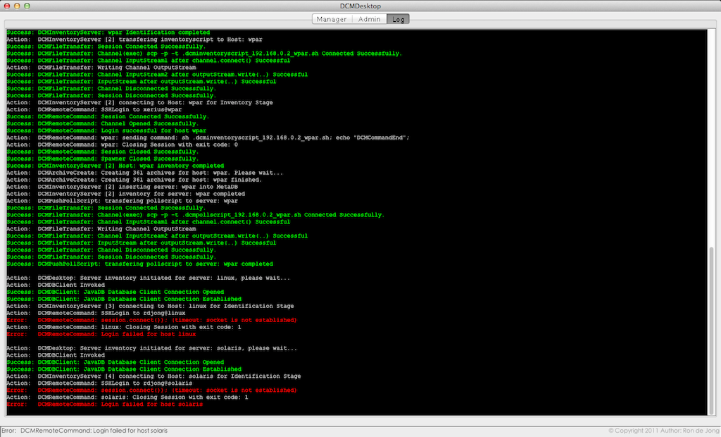 The DCMStarter allowing you to start the different DatacenterManager applications The DCMDesktop [Inventory View] (the all in one standalone desktop application) The DCMDesktop [Import Servers] (CSV File) The DCMDesktop [Admin] The DCMCommander allows you to mass command or execute a shell-script on all your servers in seconds The DCMLogger allowing you to get detailed information on DatacenterManager activities The DCMClient [Logon Window] The DCMClient basically looks the same as DCMDesktop, but connects to the central DCMServer Please download the User Manual for more information. |